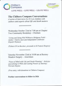 We are pleased to announce a series of public interviews to be held over the next 9 months called ‘Chiltern Compass Conversations’. The first two are detailed on this poster